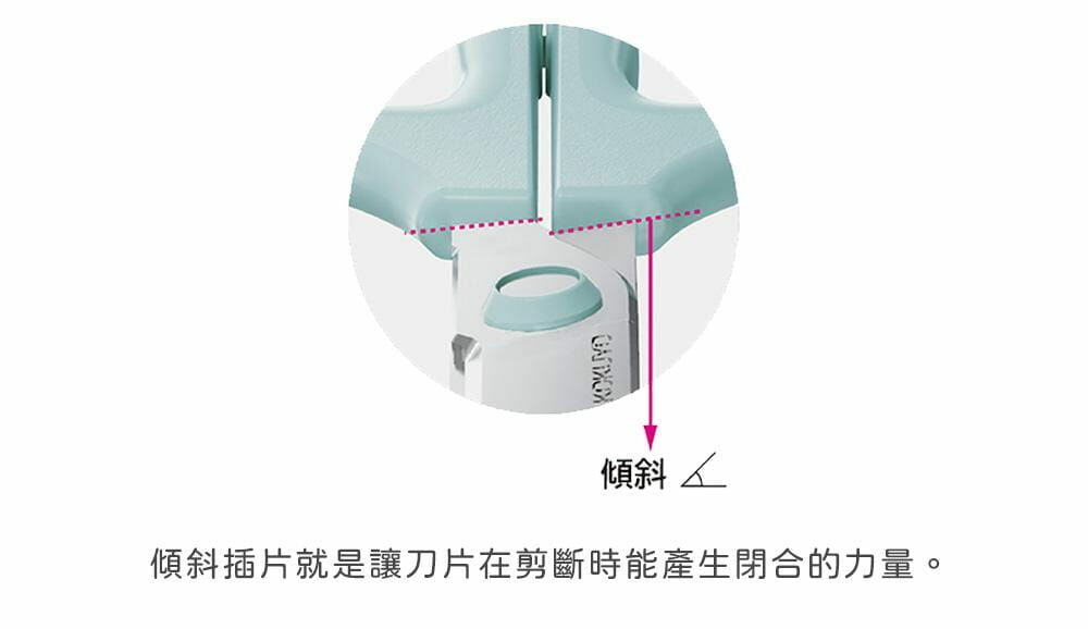 傾斜插片就是讓刀片在剪斷時能產生閉合的力量
