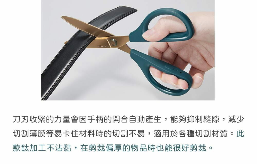 此款鈦加工不沾黏,在剪裁偏厚的物品時也能很好剪裁。