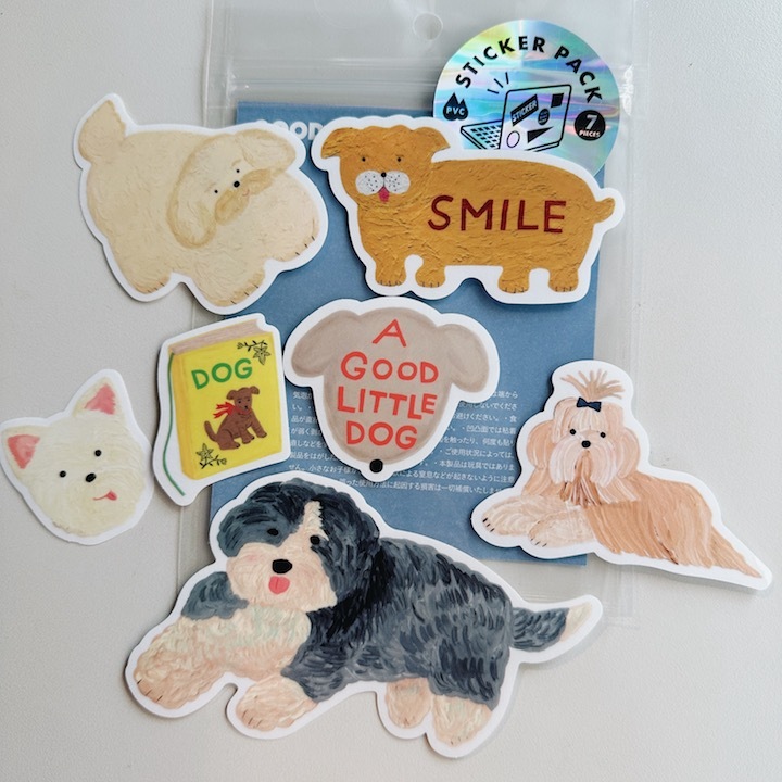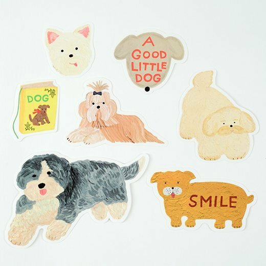 袖山嘉穗子_狗狗 7入防水貼紙包 |日本Greeting Life