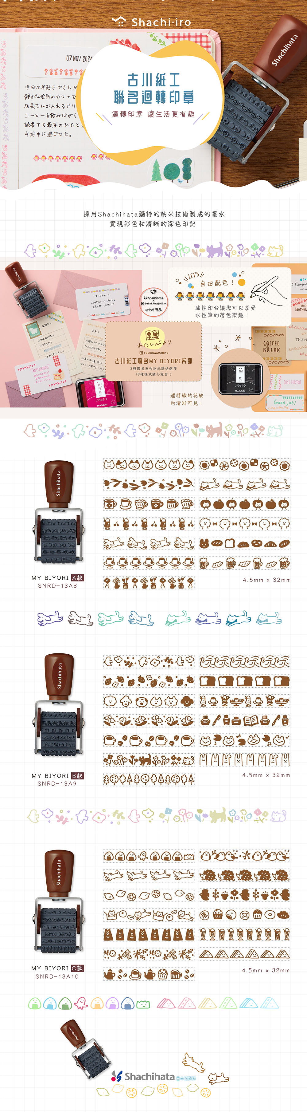 SHACHIHATA新出品的迴轉印章,每款印章共有13種圖案,可以自由組合蓋出不同的效果。