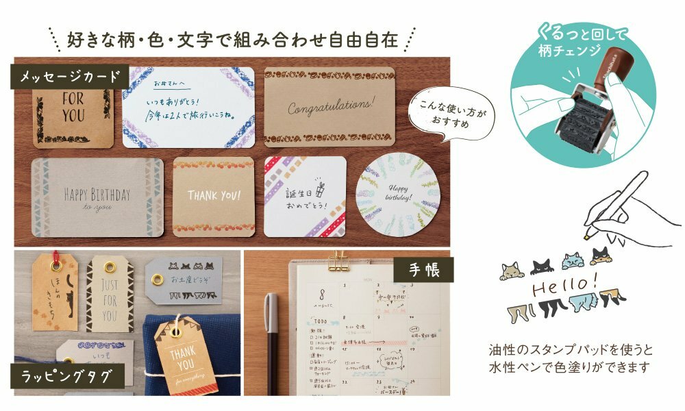 SHACHIHATA新出品的迴轉印章,每款印章共有13種圖案,可以自由組合蓋出不同的效果。