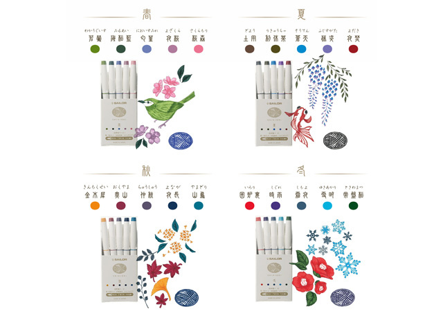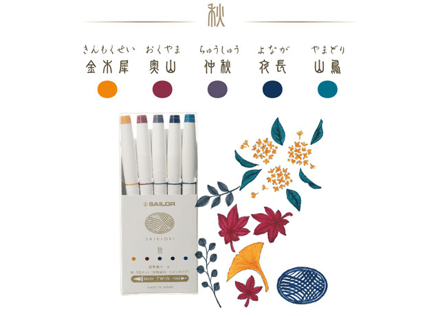 四季織系列是將同名系列的著名鋼筆墨水之顏色使用在麥克筆上,墨水顏色柔和優美,體現日本和風自然顏色。