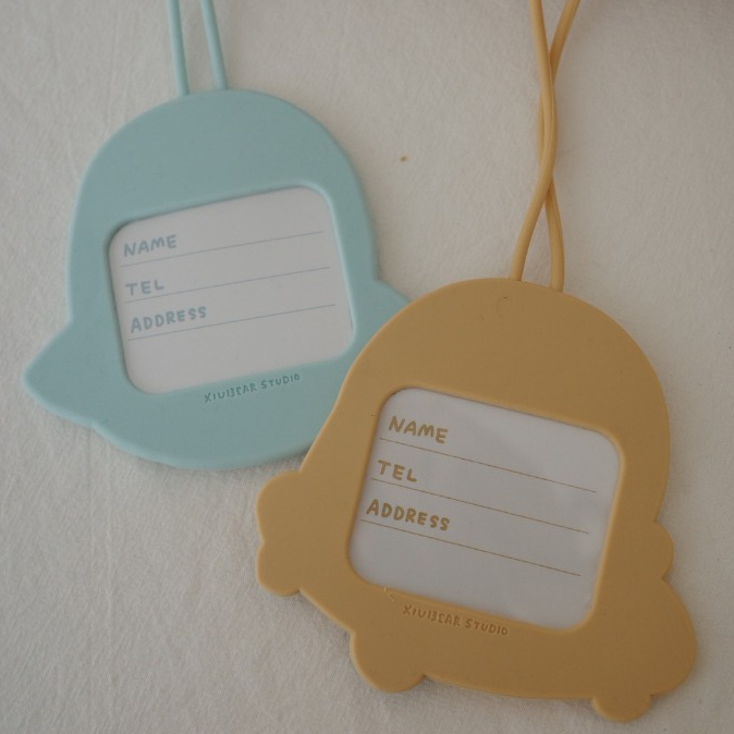 行李牌是用軟Q的矽膠製作,材質在被擠壓或彎折時,