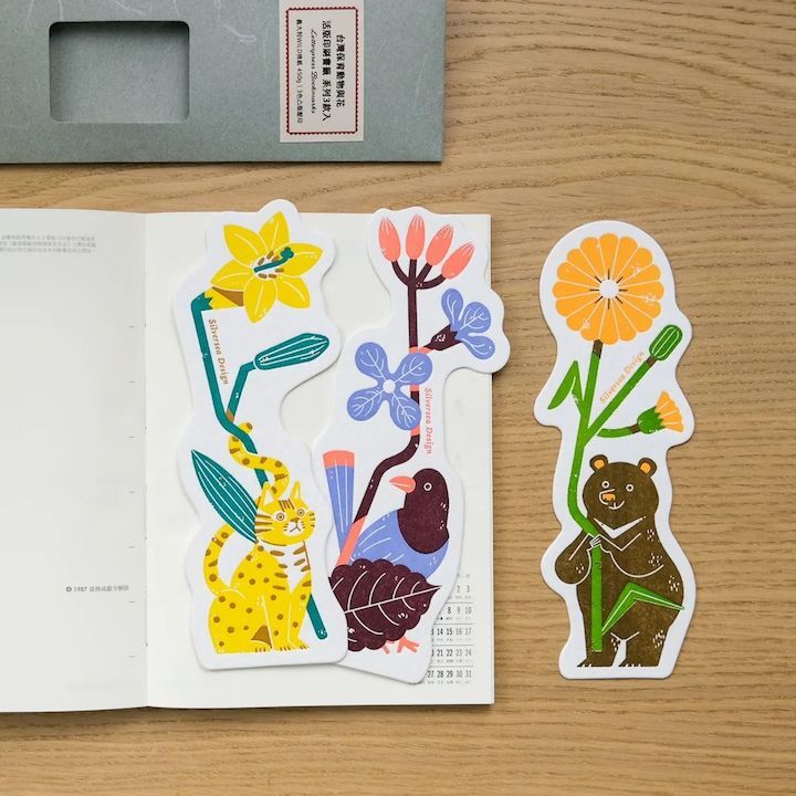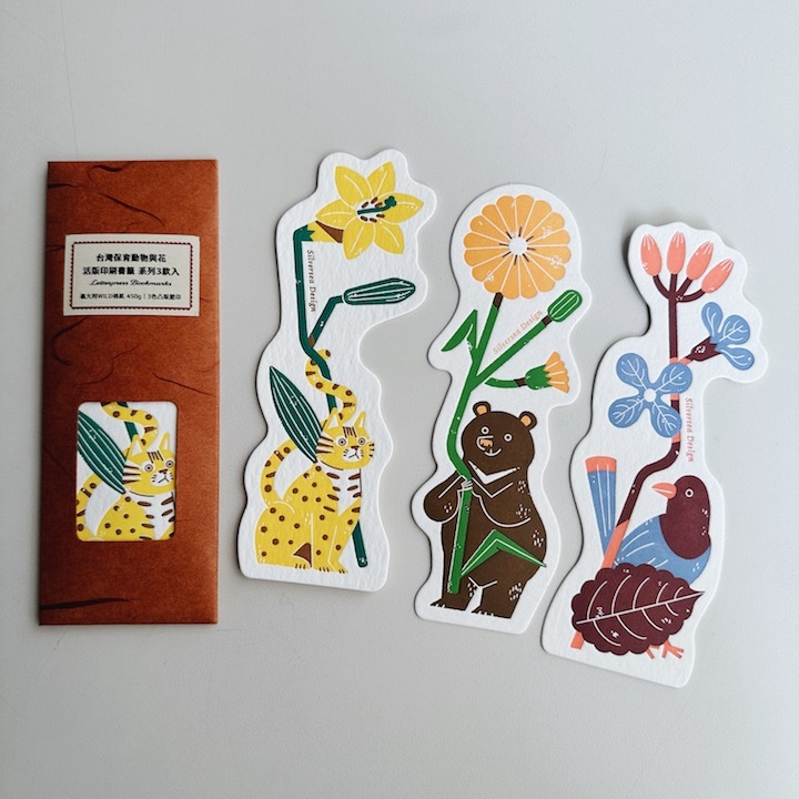 以台灣原生花朵,與野生保育動物為靈感繪製的別緻書籤。