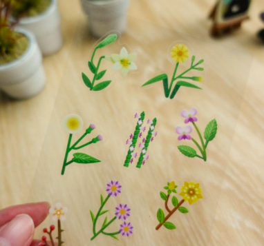 亮面透明PET材質,色彩鮮豔細節清晰,每張貼紙尺寸約高度 3 cm