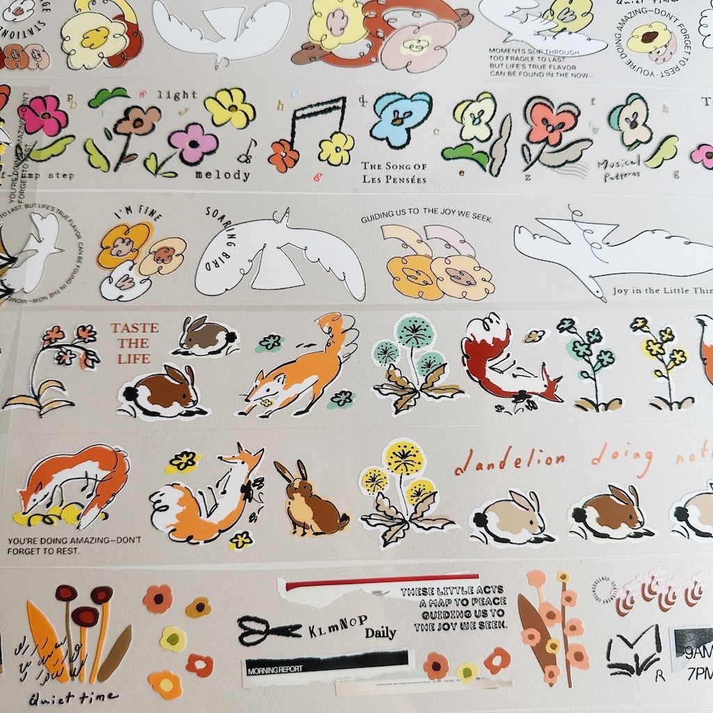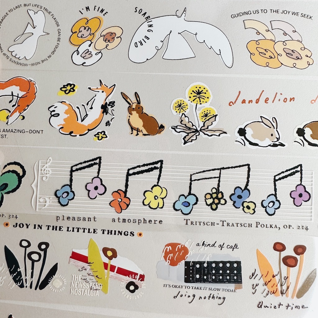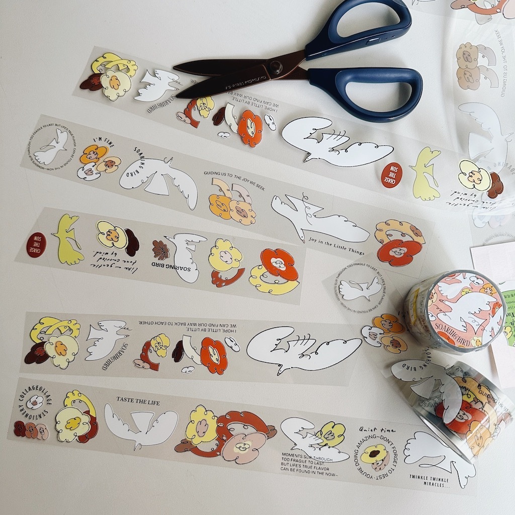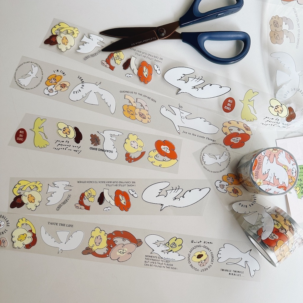 從刺繡開始發展的飛鳥,如針線一般流暢自由,捲起來的羽毛好可愛~花朵也變得像線團一樣,柔軟但頗有能量!