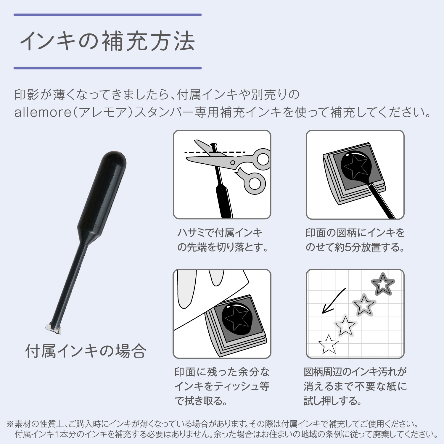 ✓ 當印章顏色變淡時,用附贈的墨水加在印面上即可補充