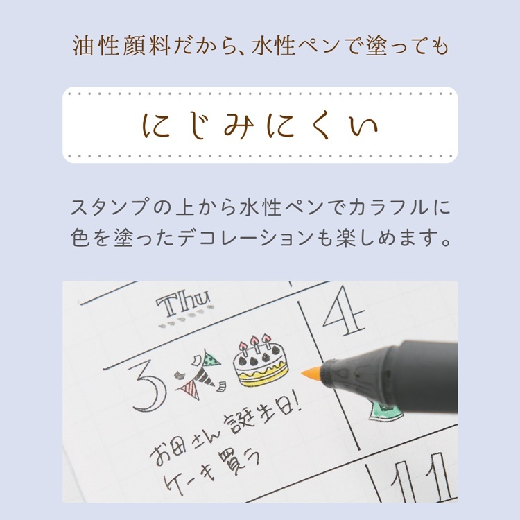 ✓ 採用 Shachihata 的油性顏料,乾後防水,可用水性筆上色