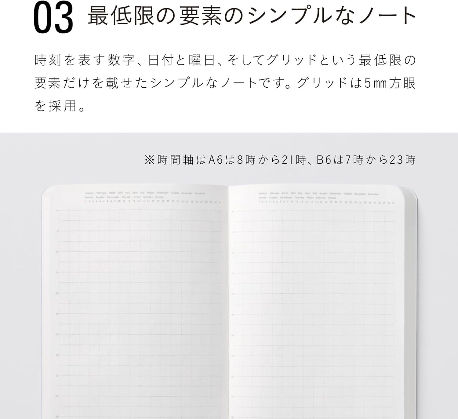 時刻、日期、星期、方眼等必要資訊以最低限度方式與設計標示,有豐富的資訊可方便運用,同時又可保持版面乾淨。