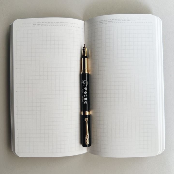 1/2 year ,足夠書寫半年的頁數,紙張薄透好攜帶,鋼筆也不易透紙。