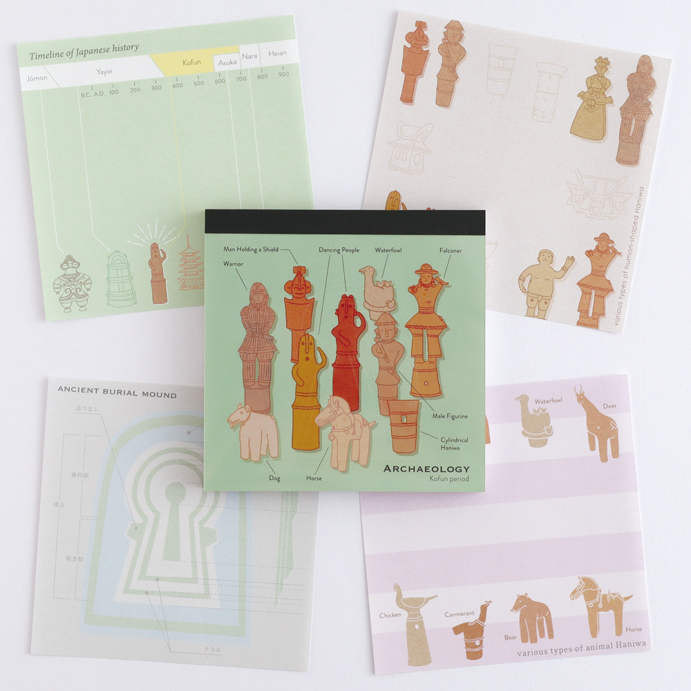 共有四個中等大小的圖案,穿插著關於埴輪土偶和古墳的精彩資訊。