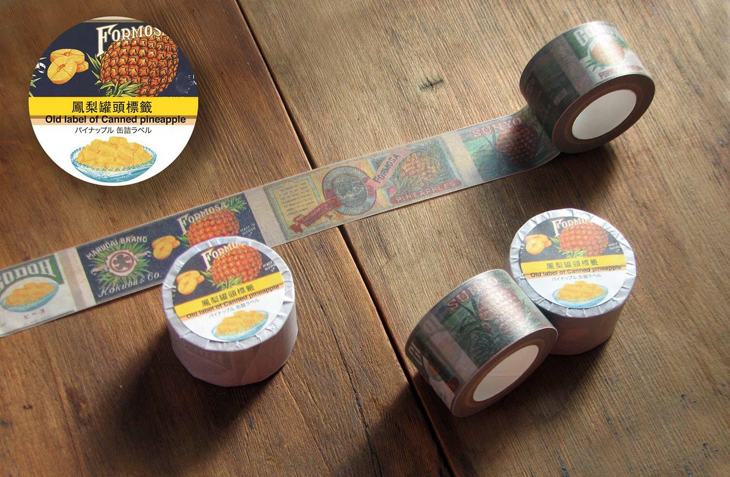 台灣過去曾有蓬勃發展的風梨罐頭產業,現在高雄還留有鳳梨工廠等建築。挑選了四張老的鳳梨罐頭標籤做成紙膠帶,圖案很有台灣特色,使用起來也非常有裝飾性。
