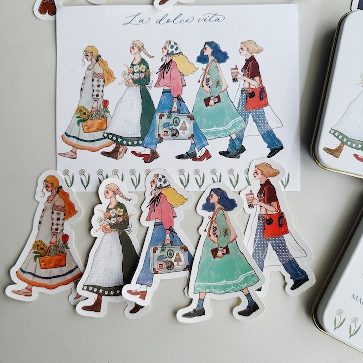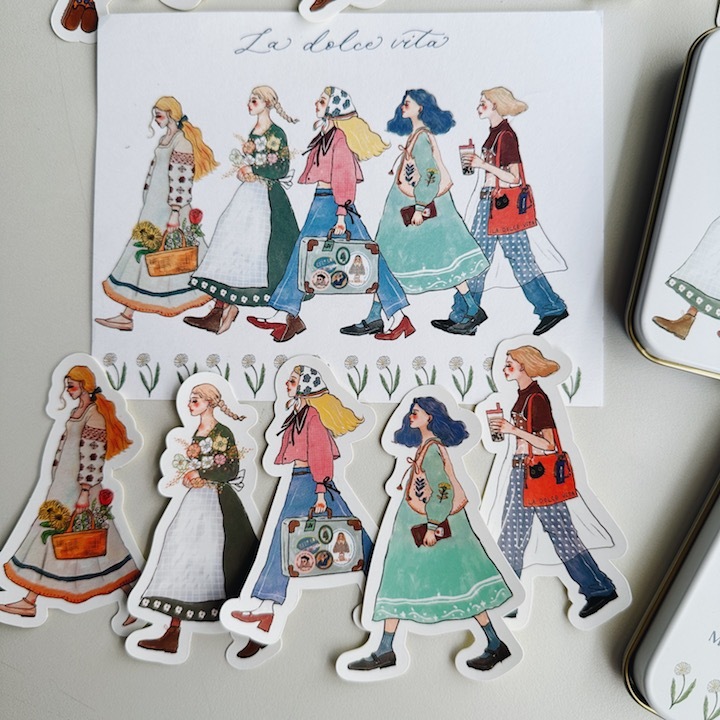 因為甜蜜生活的女孩貼紙盜版太過猖獗,所以有很長一段時間我很抗拒再出鐵盒貼紙。但是,在這趟創作的旅途中,還是有很多人一直支持著我,我因此而得到了很大的鼓勵。