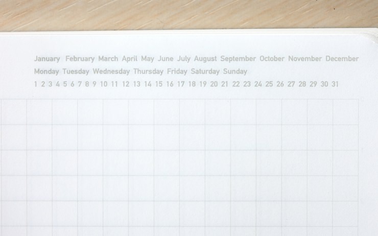時刻、日期、星期、方眼等必要資訊以最低限度方式與設計標示,有豐富的資訊可方便運用,同時又可保持版面乾淨。