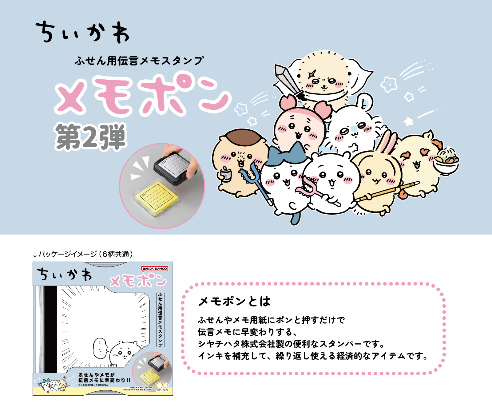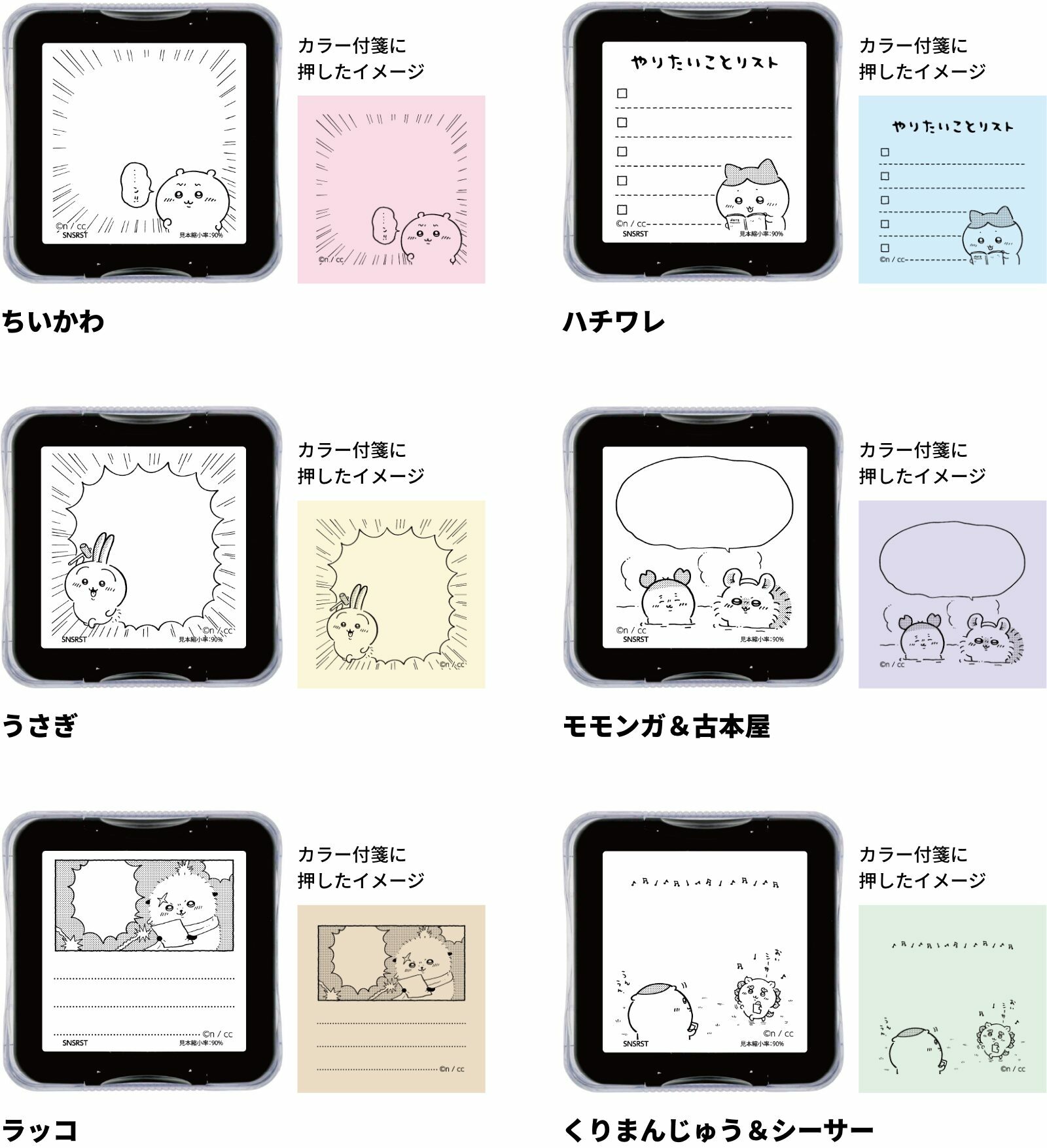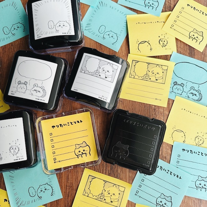 CHIIKAWA 方形浸透印章!只需在你已有的便條紙或備忘錄上輕輕一蓋,就能立即變身為充滿角色的可愛傳言便條。