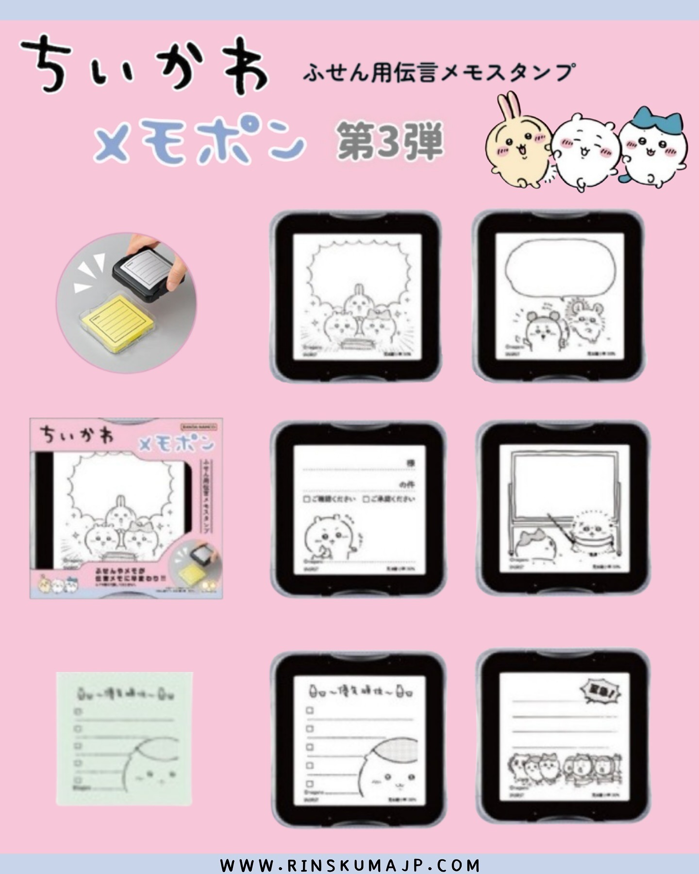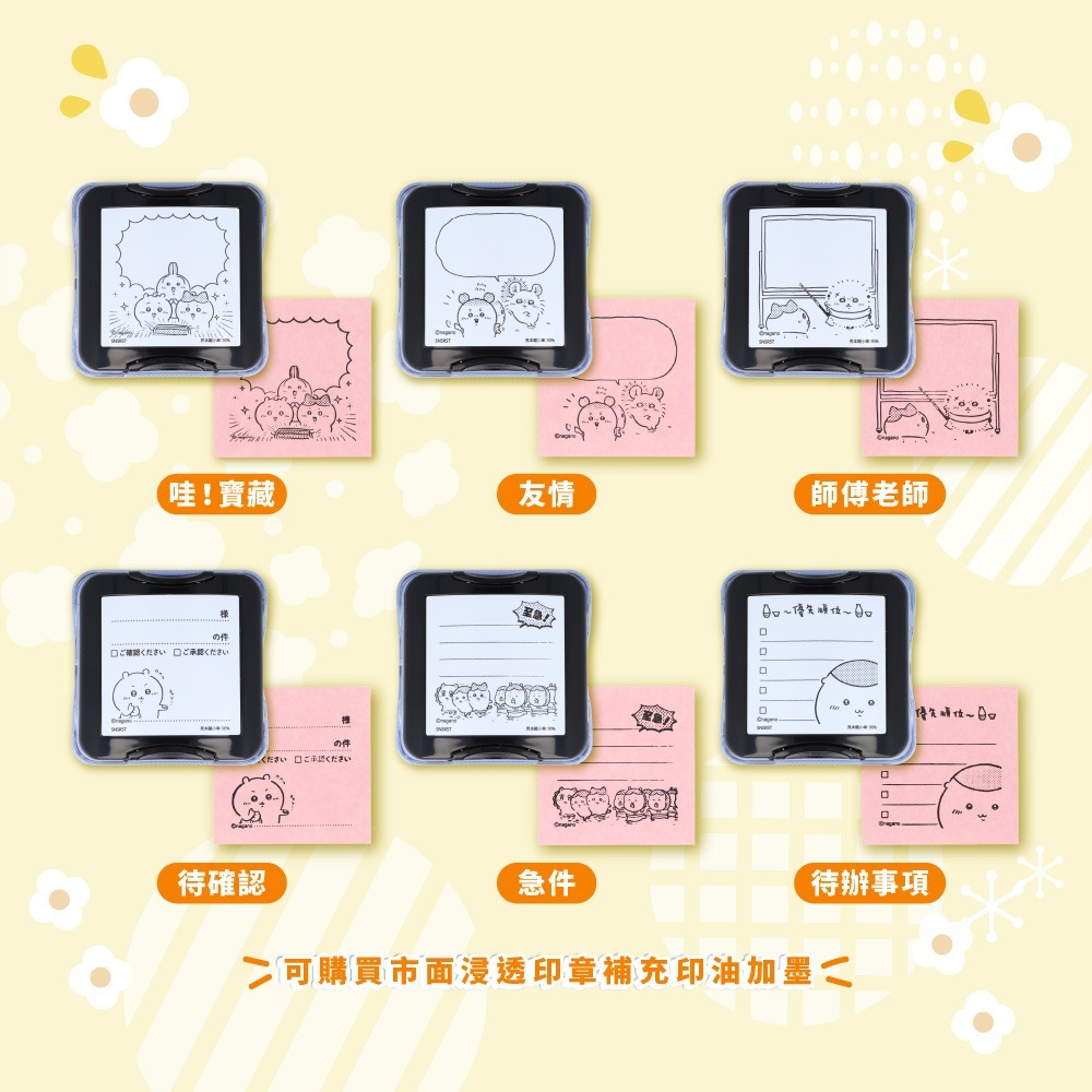 CHIIKAWA 方形浸透印章!只需在你已有的便條紙或備忘錄上輕輕一蓋,就能立即變身為充滿角色的可愛傳言便條。