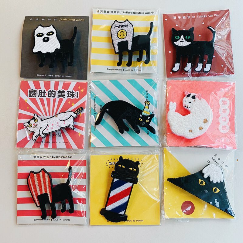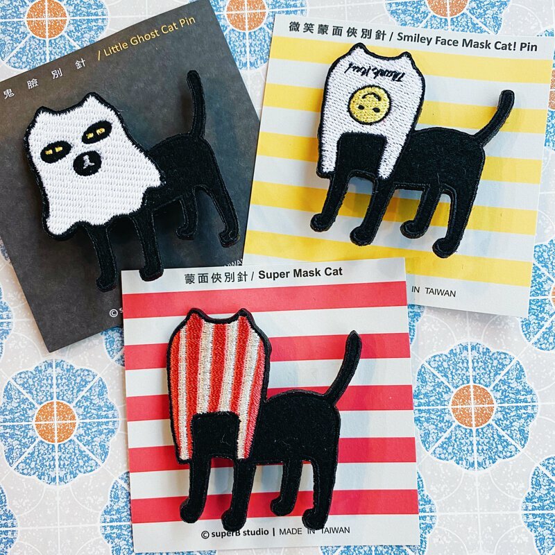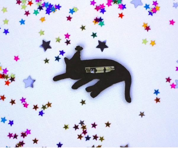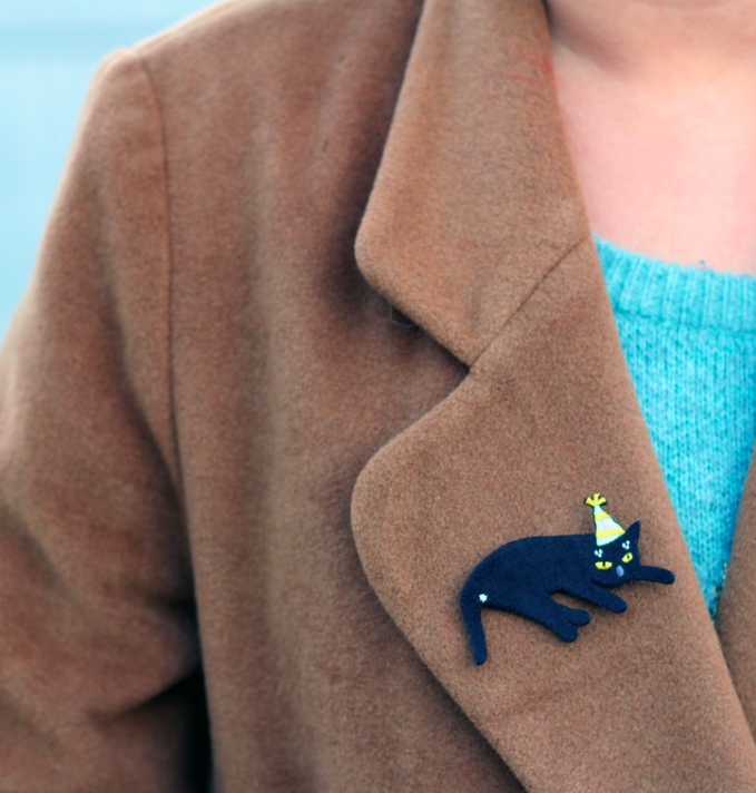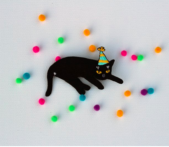生日帽臭屁黑 貓咪繡花別針|superB studio