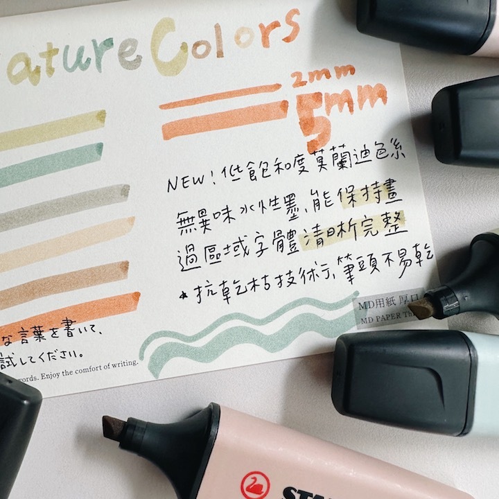 獨特配方與技術,即使不蓋筆蓋達四小時墨水也不會乾枯,是歐洲暢銷的螢光筆之一。