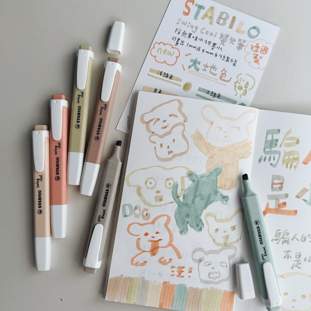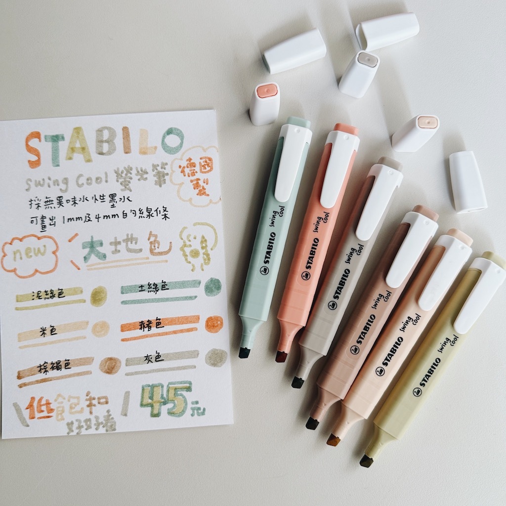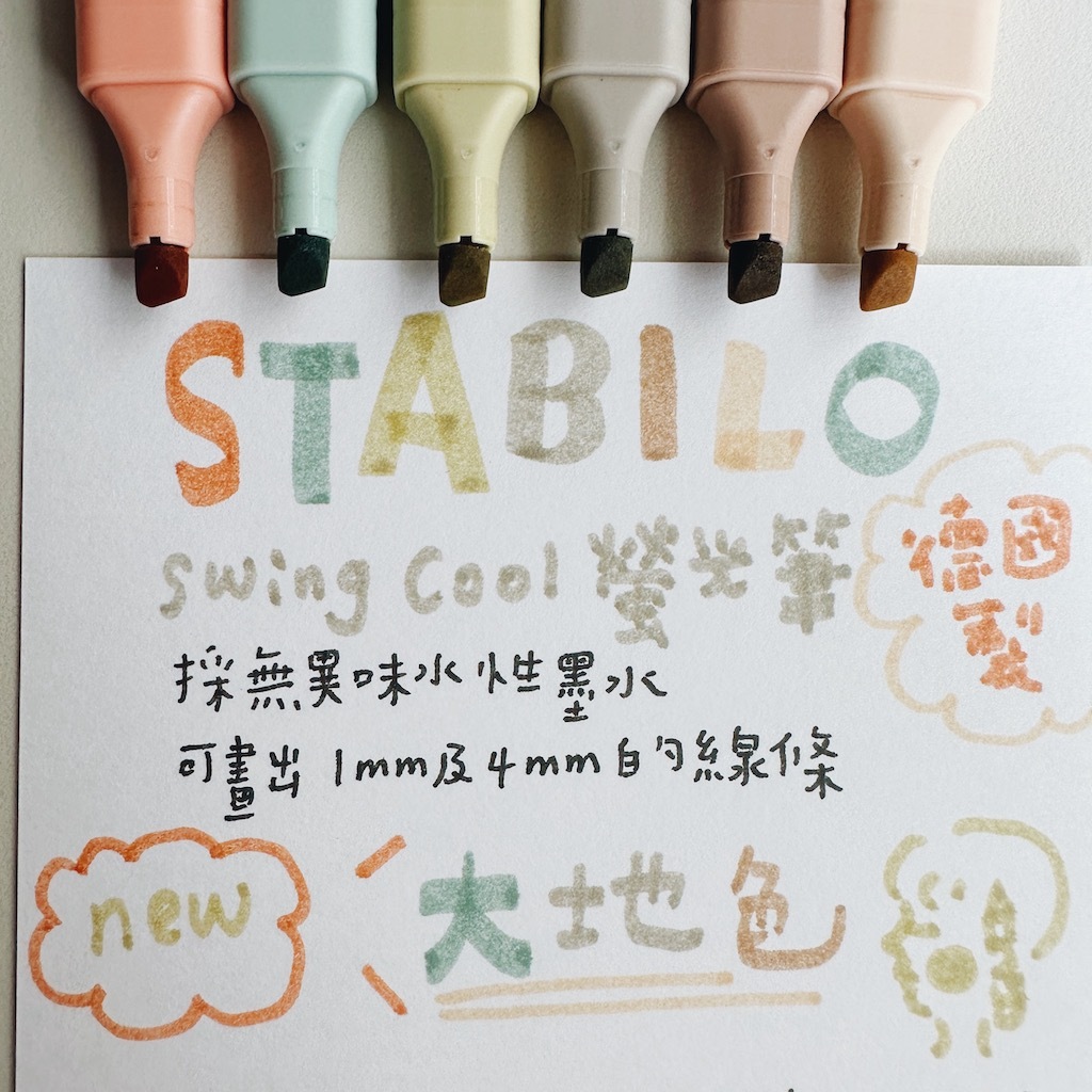 大地色 swing cool 螢光筆 6色|德國STABILO