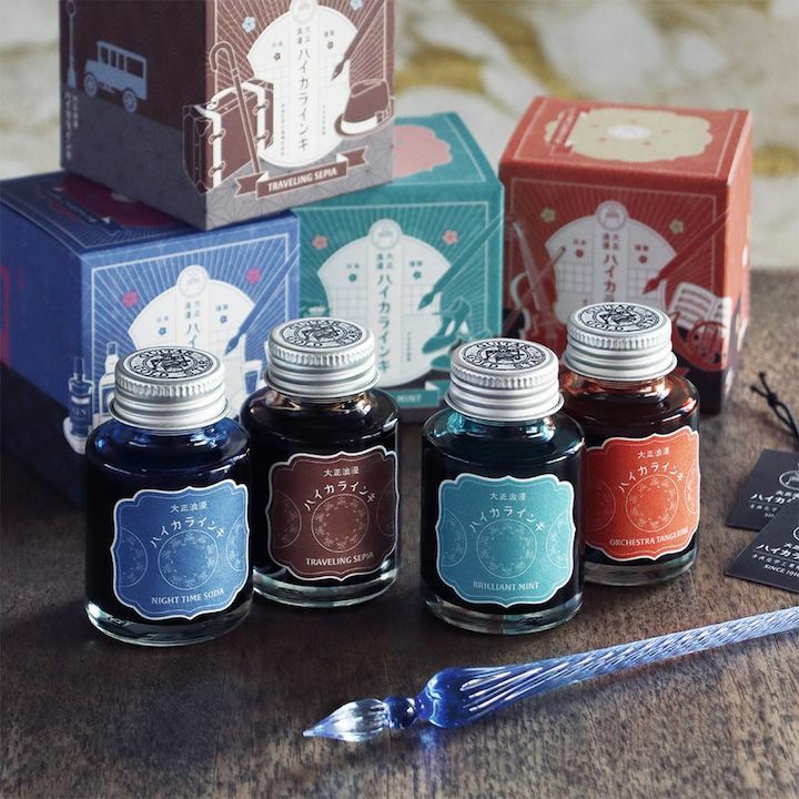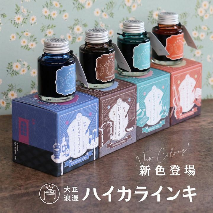 在墨水瓶的頂部,寺西化學工業的商標“吉他標誌”裝飾著創業初期的翻版設計。