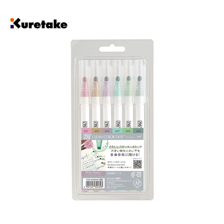煙燻色 6入吳竹單頭點點筆 ZIG Clean Color Dot|日本 Kuretake