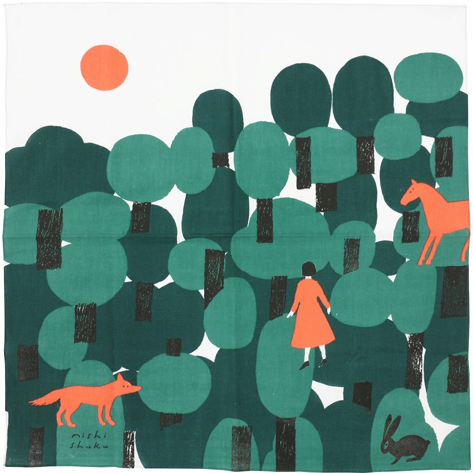日本製純棉手帕 茶巾 表現社 西淑:森林