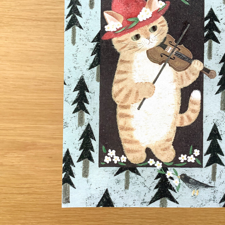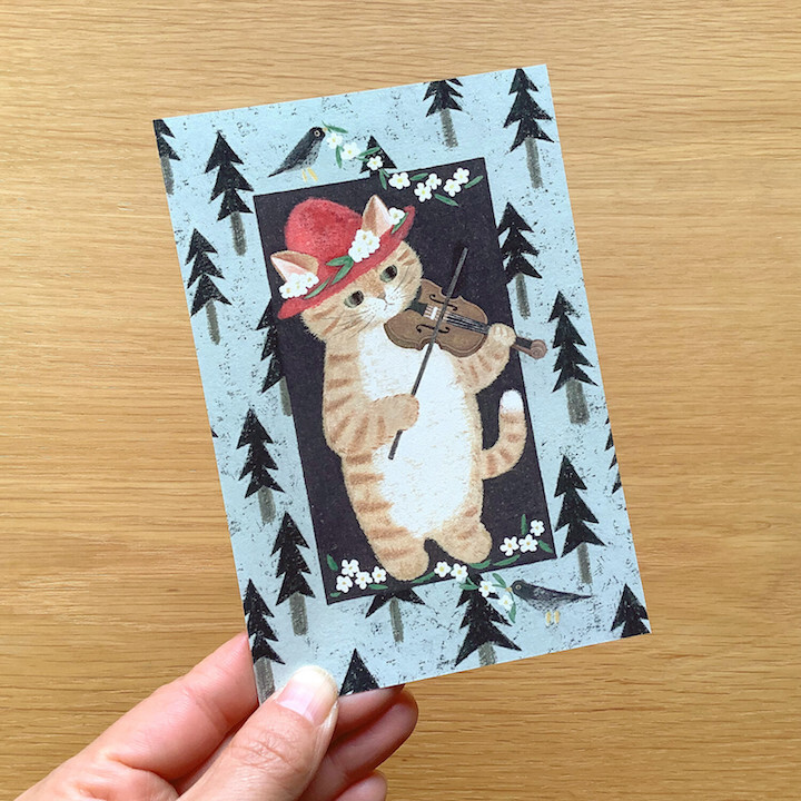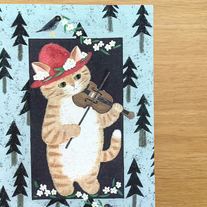 小提琴貓 貓咪繪本明信片|日本 4legs
