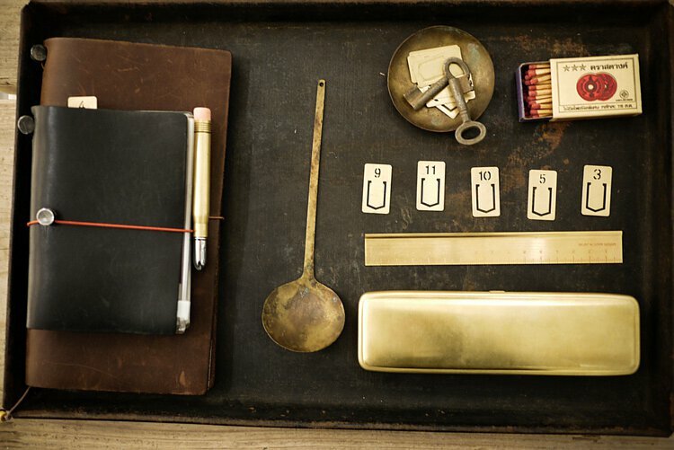 黃銅由銅與鋅的合金,具有獨特的美感與光澤,隨著常伴使用時日漸長,素材質感經年累月緩緩變化,變成深沉而柔和的顏色,漸漸變成無可替代的珍貴物品。