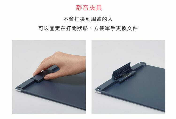 靜音夾具:不用在意會打擾到周遭,夾具可固定在打開的狀態, 更方便單手將資料替換。