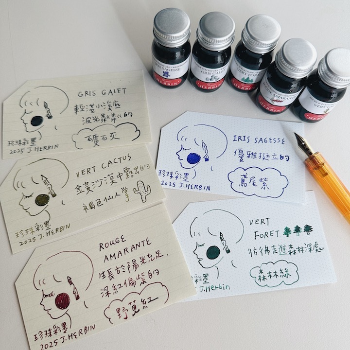 J. Herbin是法國的頂級油墨製造商,全球最古老的墨水品牌,專門製造鋼筆適用的高品質墨水,拿破崙、雨果等著名人物皆使用過品牌的墨水,其黑色墨水為鐘樓怪人及悲慘世界作者雨果Victor Hugo專用,高品質的製作與均勻流暢、顯色度極佳的產品,為其贏得墨水中的寶石美名。