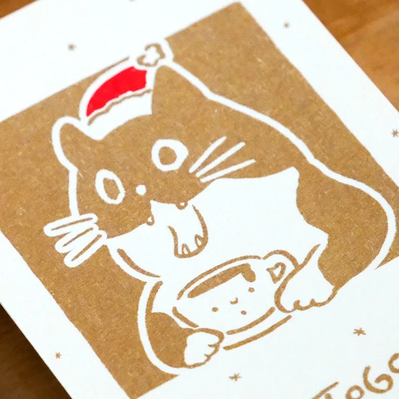 有時快樂很簡單,溫暖好喝的咖啡、一臉滿足的貓。使用來自日本的霜白紙,搭配金色油墨質感十足,背面有完整空間可供書寫與黏貼郵票。