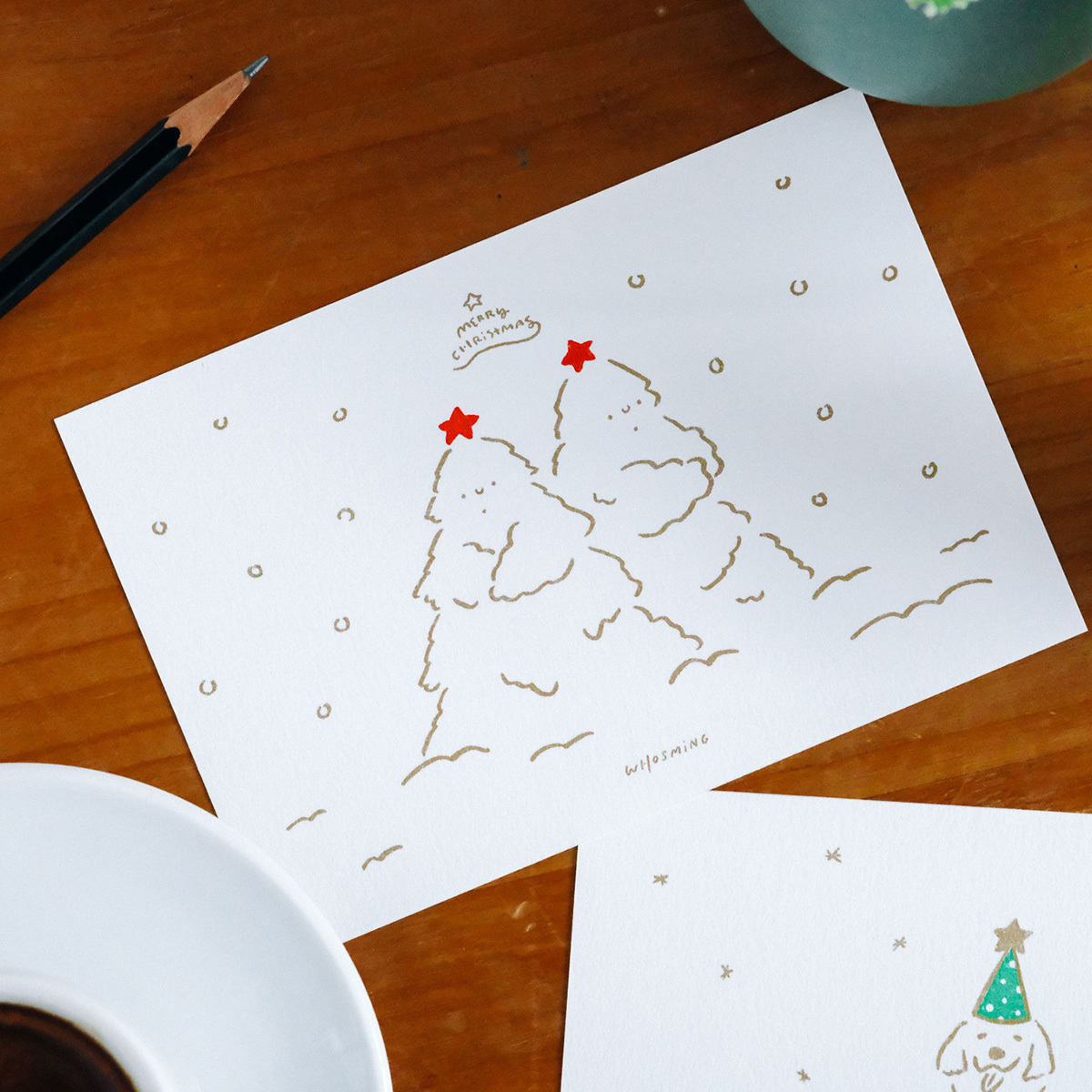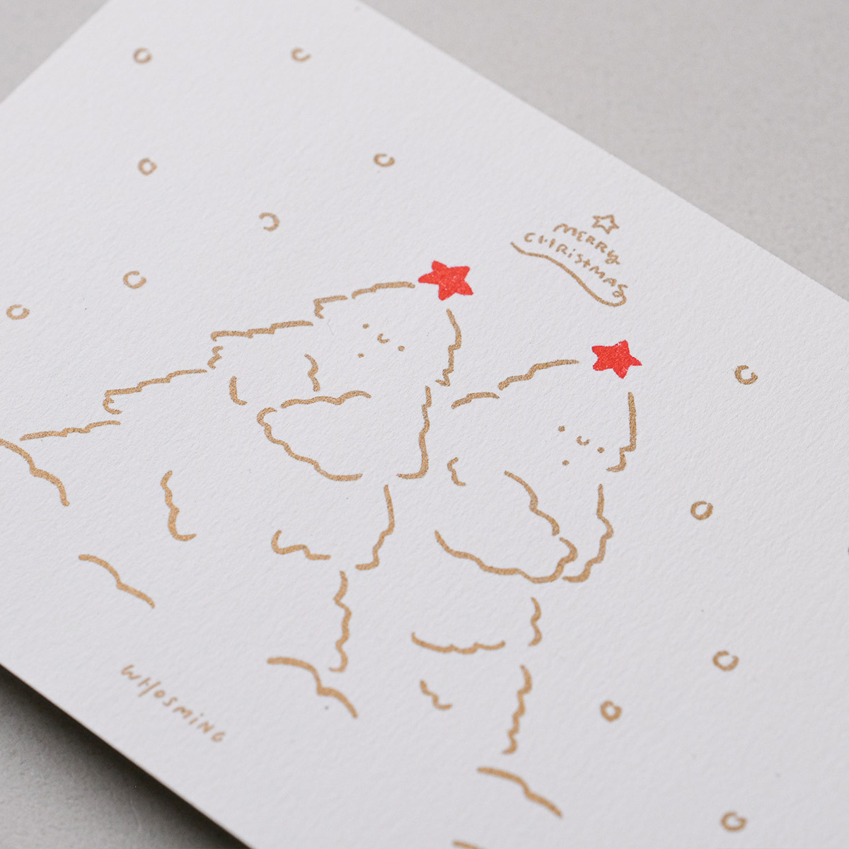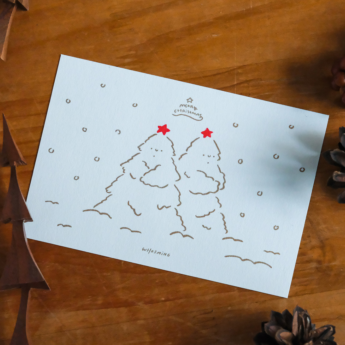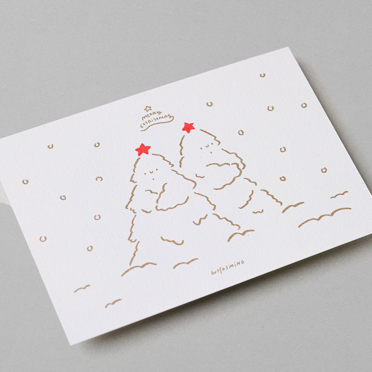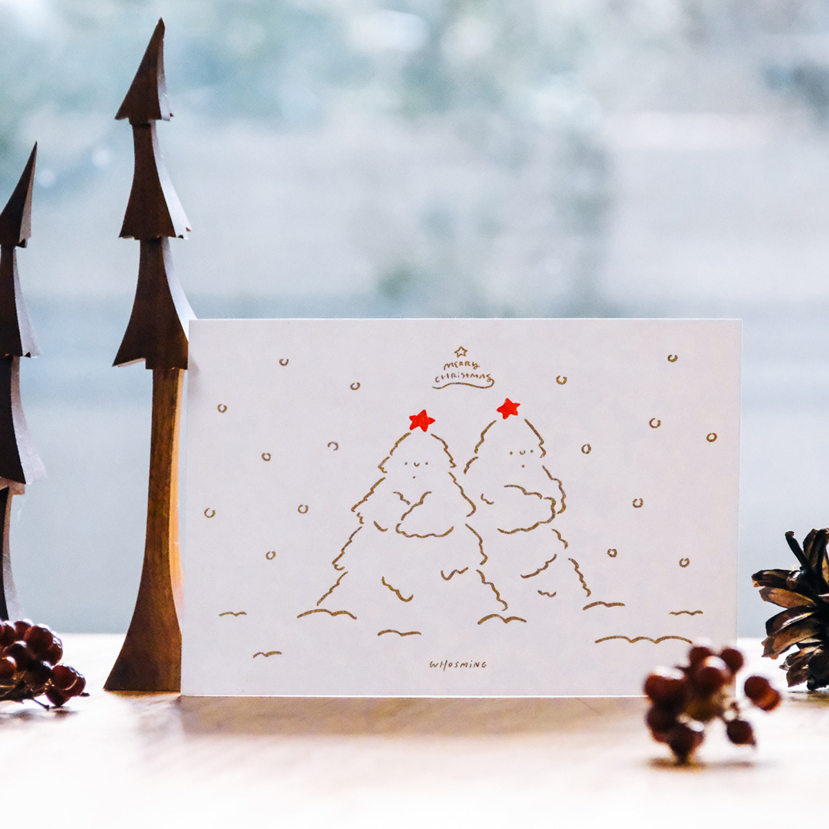以聖誕樹冰為創作主題設計的節慶卡片。使用來自日本的霜白紙,搭配金色油墨質感十足,背面有完整空間可供書寫與黏貼郵票。