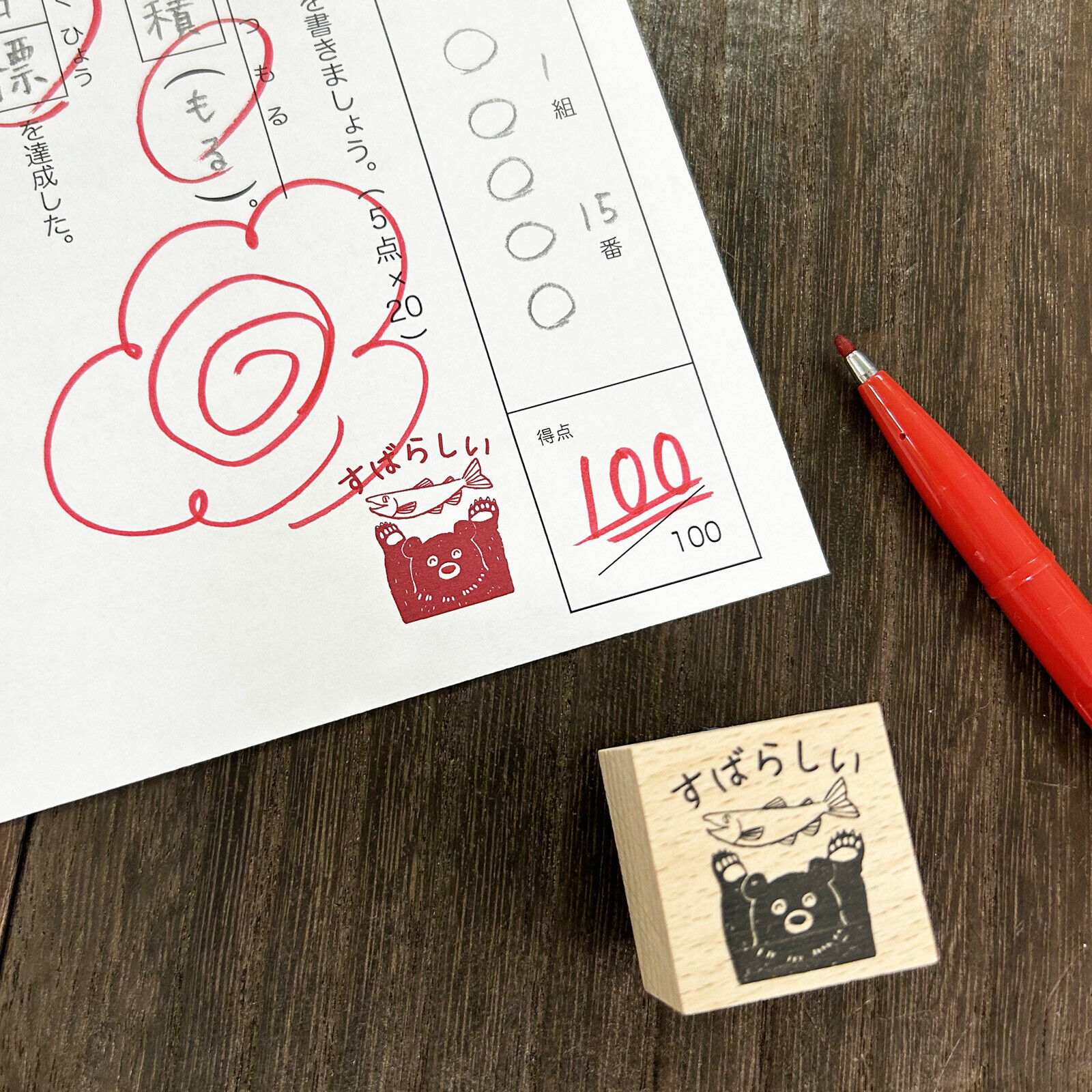 抓魚熊 木製印章|日本 ARTE