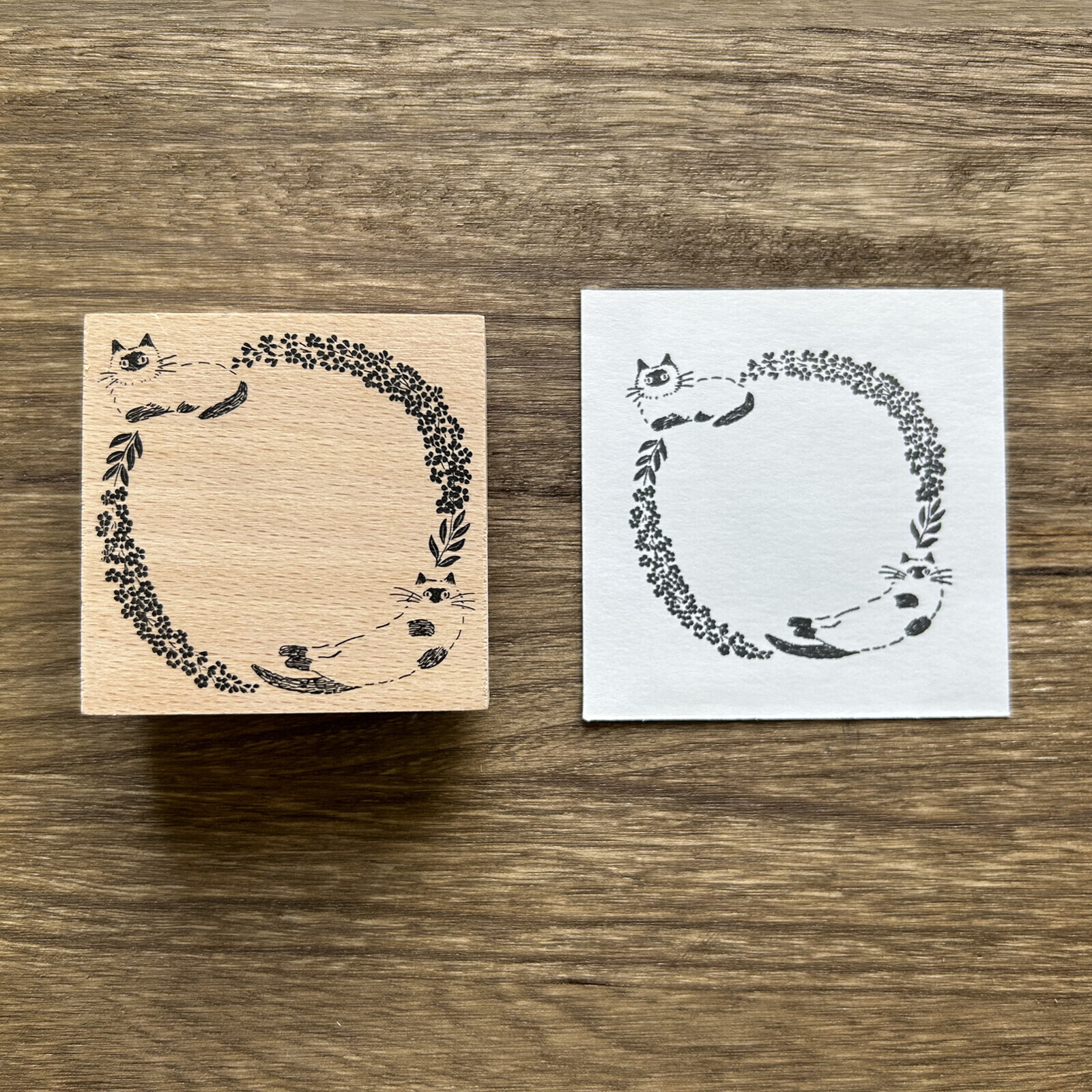 暹羅貓 貓咪 花圈 木製印章|日本 ARTE
