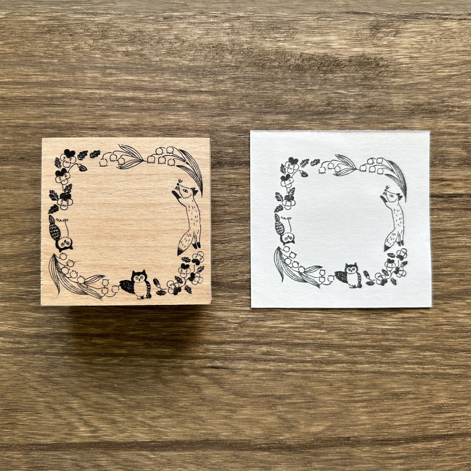 狐狸 貓頭鷹 花圈 木製印章|日本 ARTE