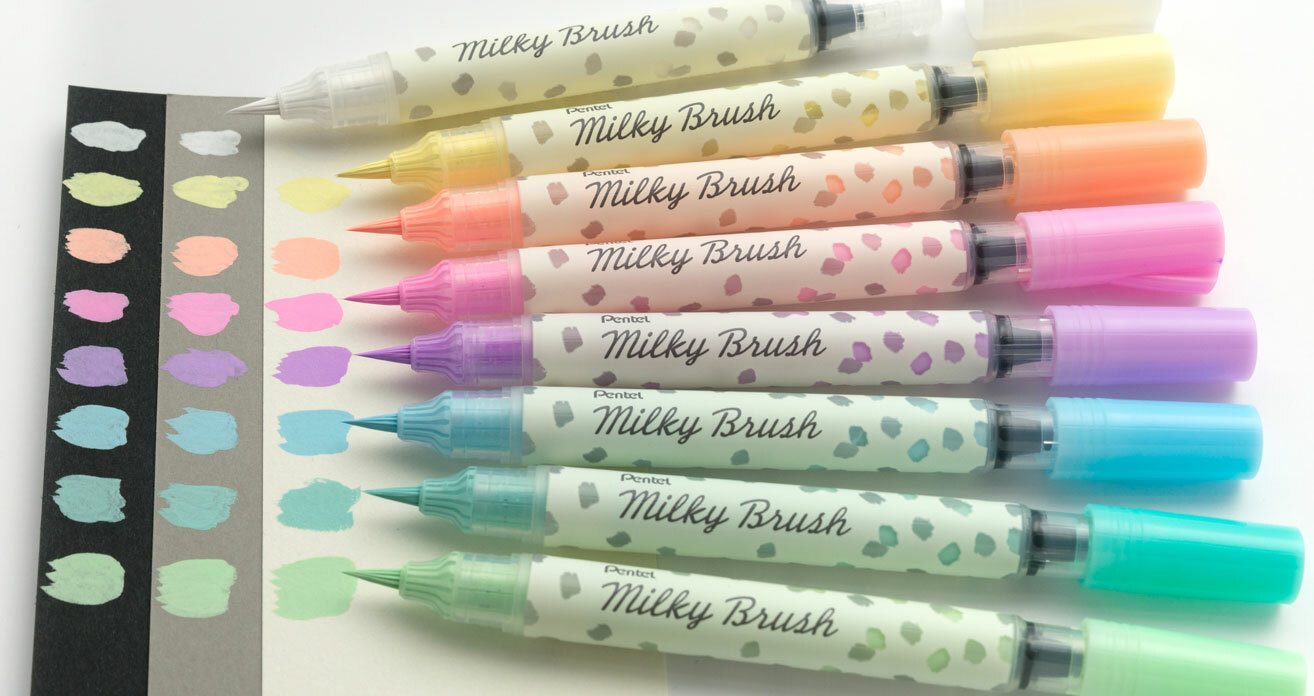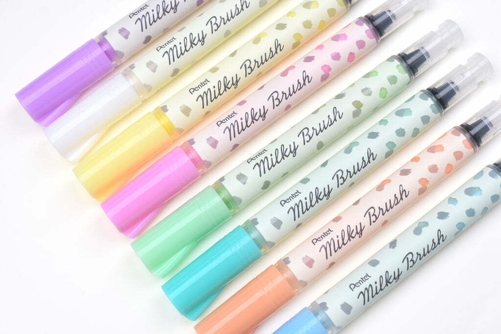 日本Pentel 新推出的粉彩色 軟頭藝術毛筆Milky Brush,畫圖寫字都非常方便