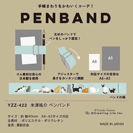 米津祐介_貓咪 書綁帶筆插 A5-A6手帳專用|日本Greeting Life