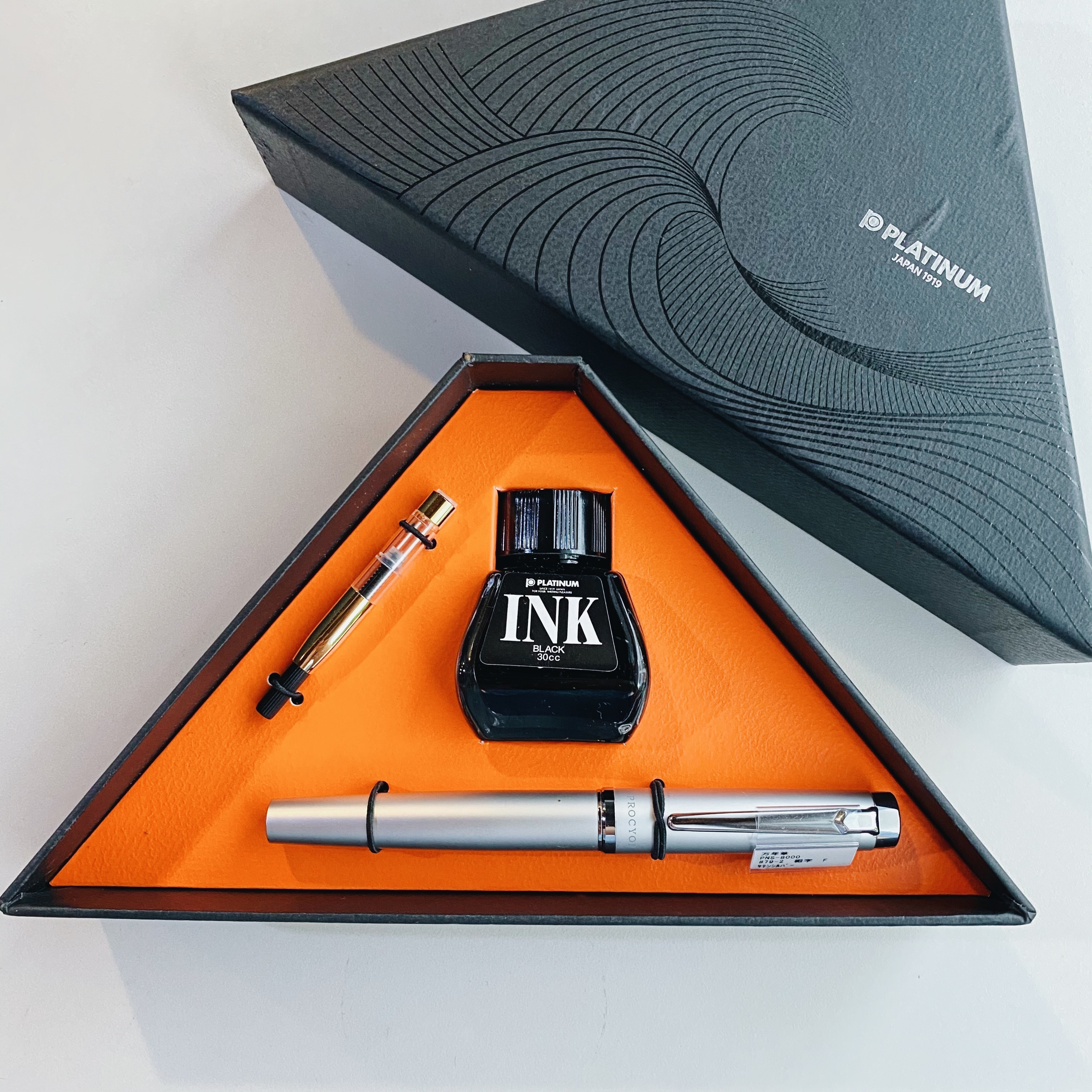 限量!100元加購 白金禮盒組 ,內含白金經典黑色墨水(30ml)、吸墨器,原廠三角禮盒