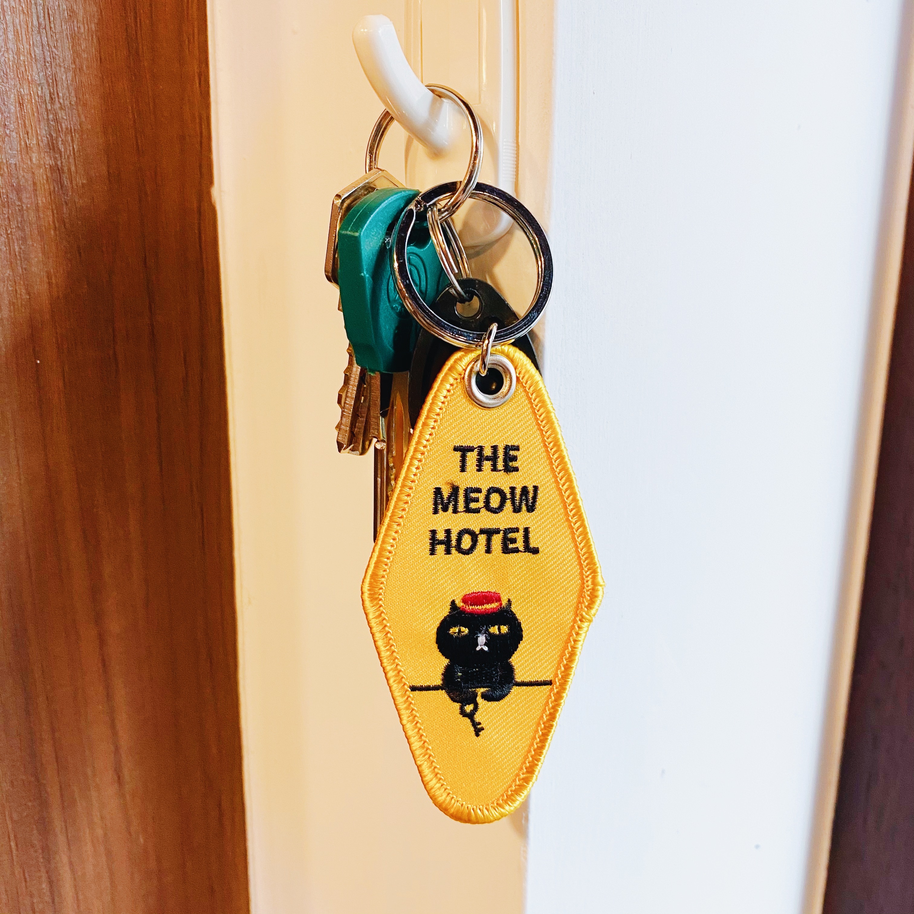 阿喵大飯店的鑰匙圈,早期飯店鑰匙圈復古的造型,搭配繡線的手感,讓您入住飯店的時候,備感尊榮。