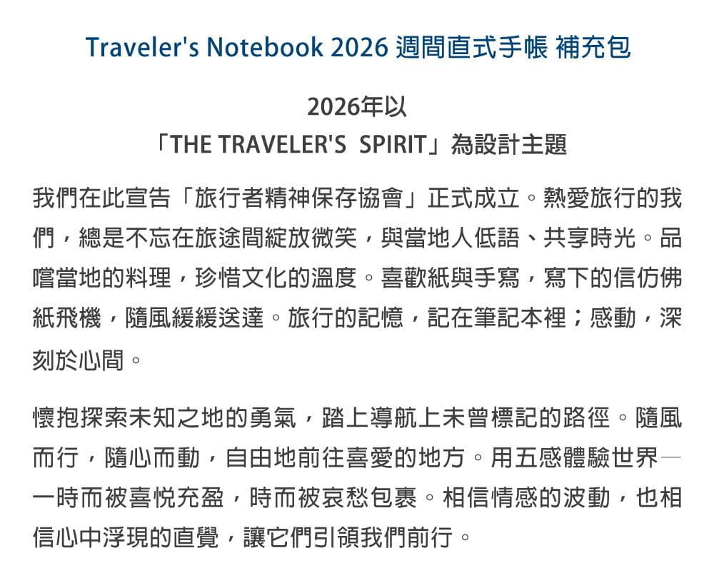 經典的TRAVELER'S NOTEBOOK手帳本系列,輕薄簡潔方便隨身攜帶;也可當作替換內頁,搭配牛皮封套使用,依自我需求隨機替換排列組合,持續使用就越加散發出生活軌跡的味道,創造出獨一無二的旅人手帳!