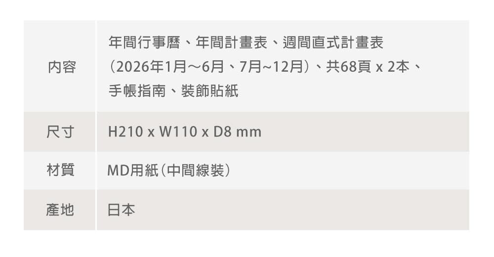 ✰頁數:分為2026年1-6月 & 2026年7-12月,2本各68頁