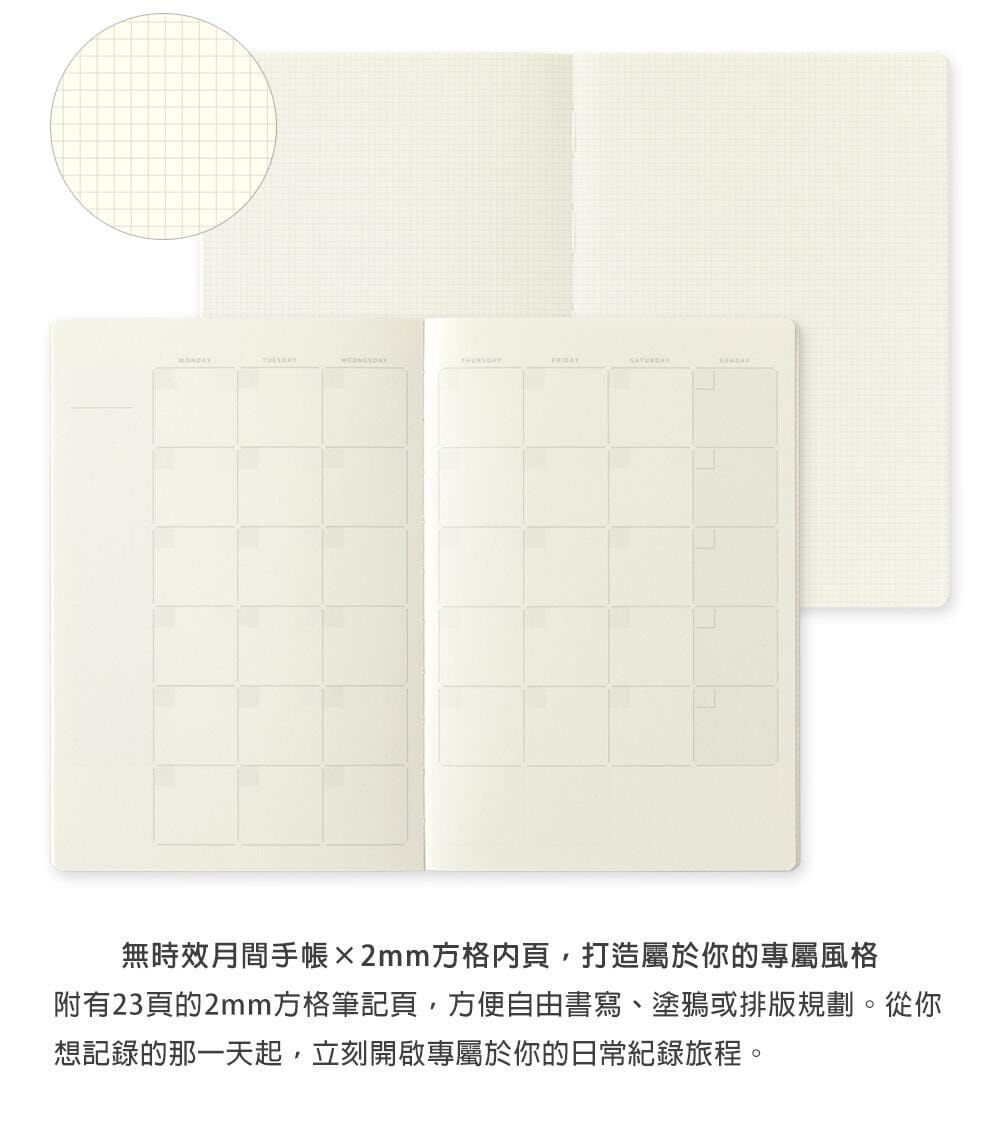 內頁:MD厚紙,12個月份月計畫+23頁方格頁