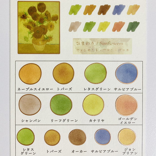 向日葵 繪畫の色見本帖貼紙 半透+玫瑰金|日本Kamio
