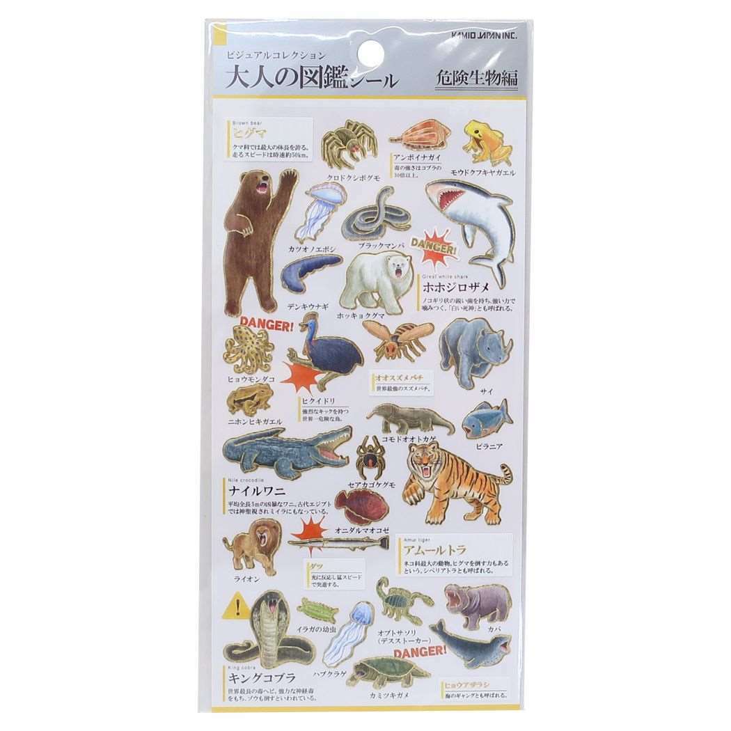危險動物 大人的圖鑑 金箔壓印手帳貼紙|日本Kamio