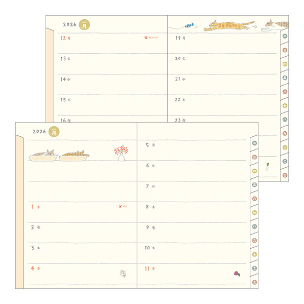 由此可預覽2025年1月~2月的內頁:https://www.midori-store.net/diary2026/inpaper/22367006.html