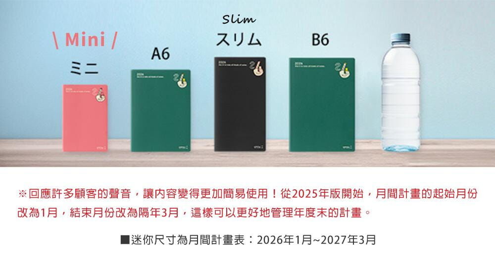 從攜帶便利的迷你尺寸到書寫空間充足的B6尺寸,一共4種尺寸供選擇。