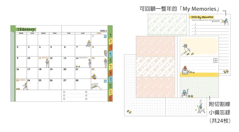 每本另包含MEMO備忘錄、年間計劃表,讓你輕鬆掌控行程有效率。