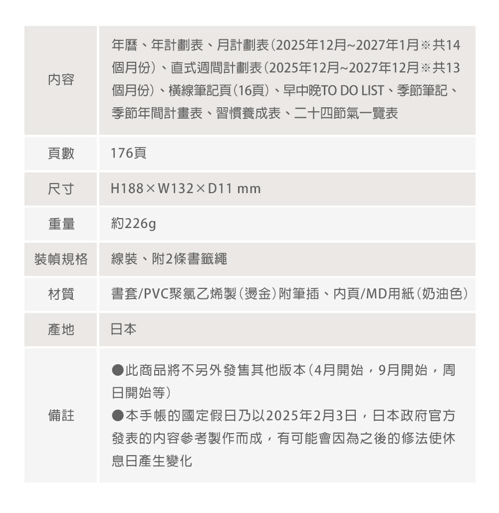 MIDORI 2026 Day Length一日之長手帳(B6)-