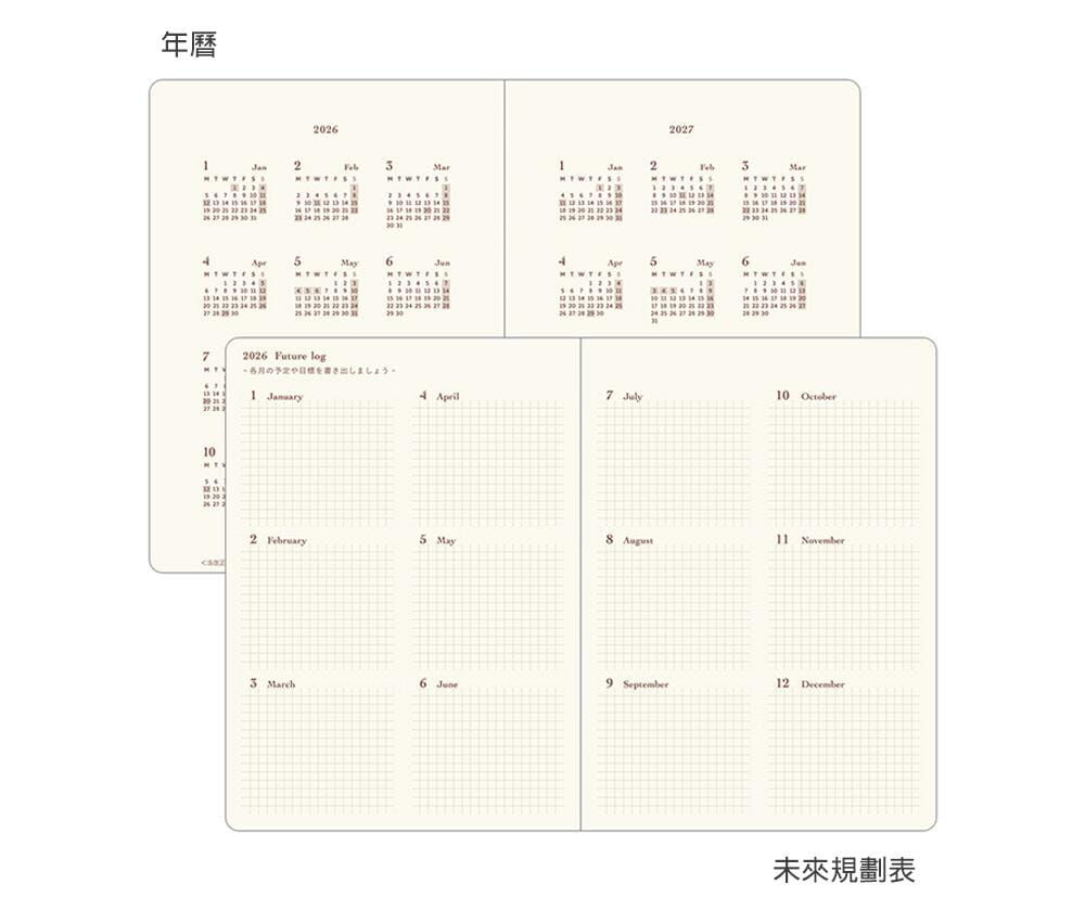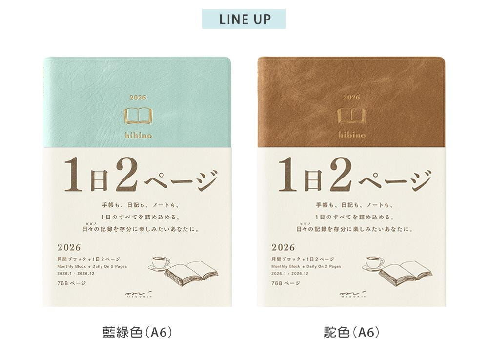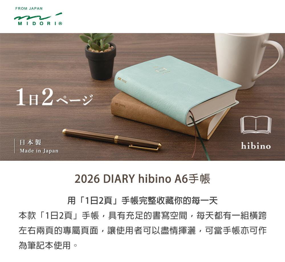 2026 Diary Hibino手帳 1日2頁 A6|日本MIDORI