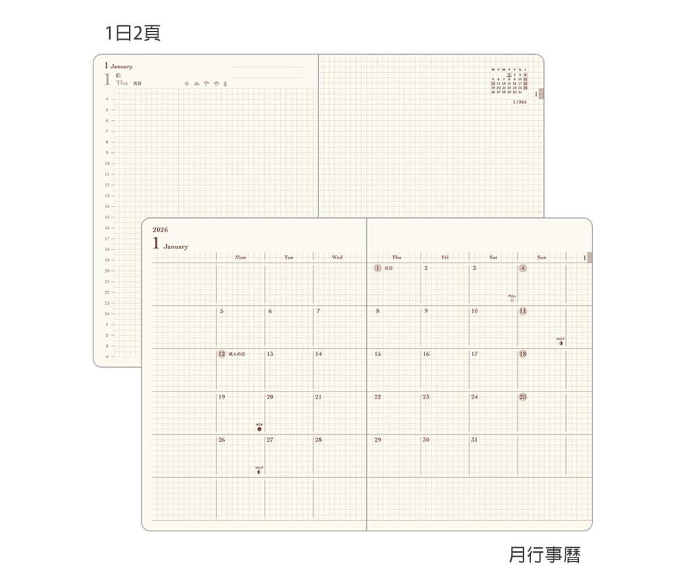 MIDORI 2026 Diary hibino手帳1曰2頁A6-